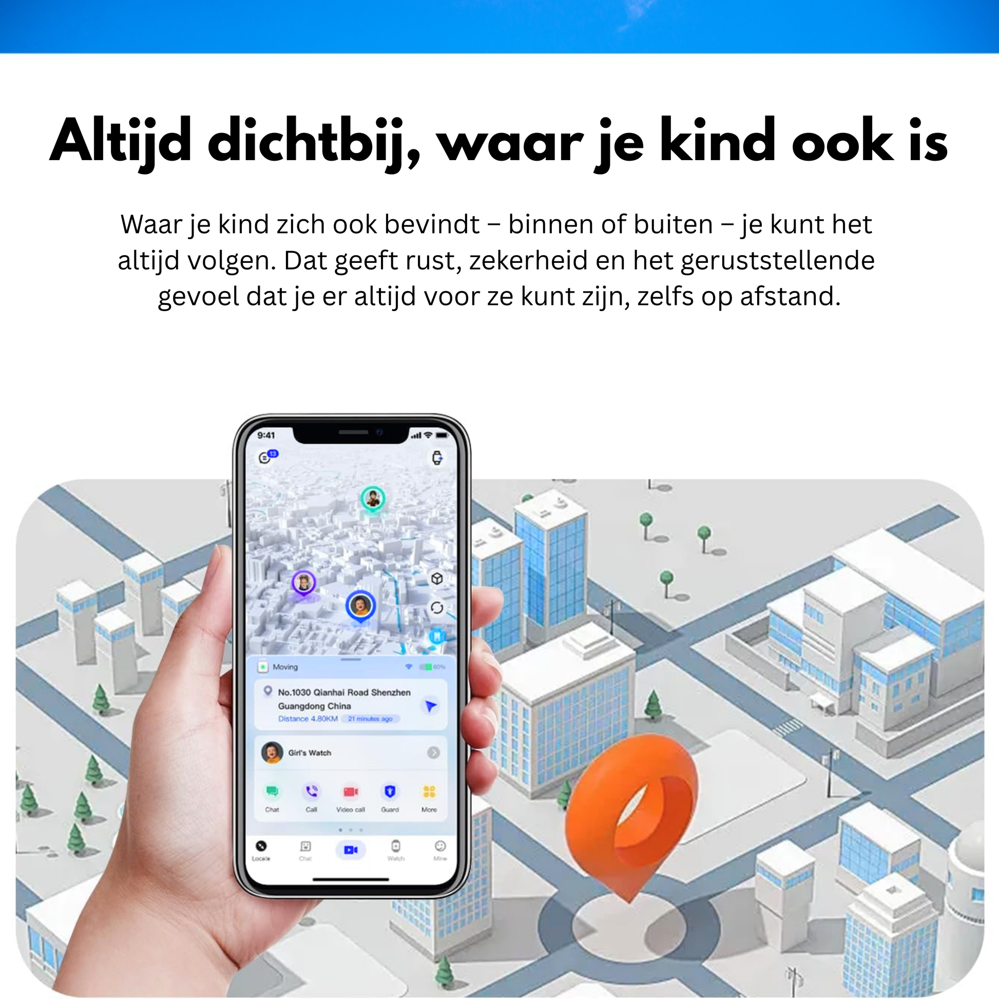 The WatchMee™ Kids' Watch is the smart and safe choice for both parents and children. With features such as GPS tracking, calling, video chat, SOS emergency button, and a built-in camera, you always know where your child is and can easily stay in touch – no matter where you are. Designed for children aged 5 to 12, with a user-friendly interface, cheerful design, and handy tools like an alarm, pedometer, and even games.