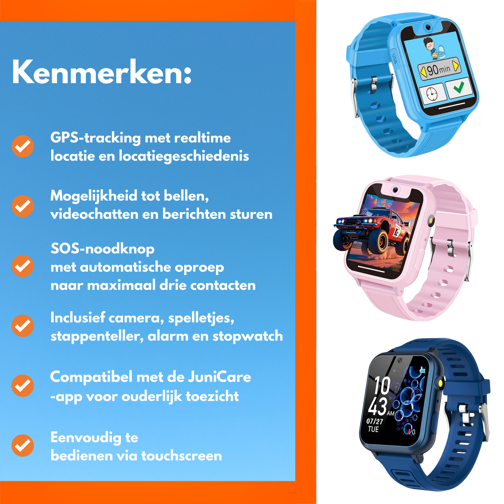 ✅ All-in-one smartwatch for kids – Includes GPS tracking, (video) calls, voice messages, alarm, camera, pedometer, games, stopwatch, and more.